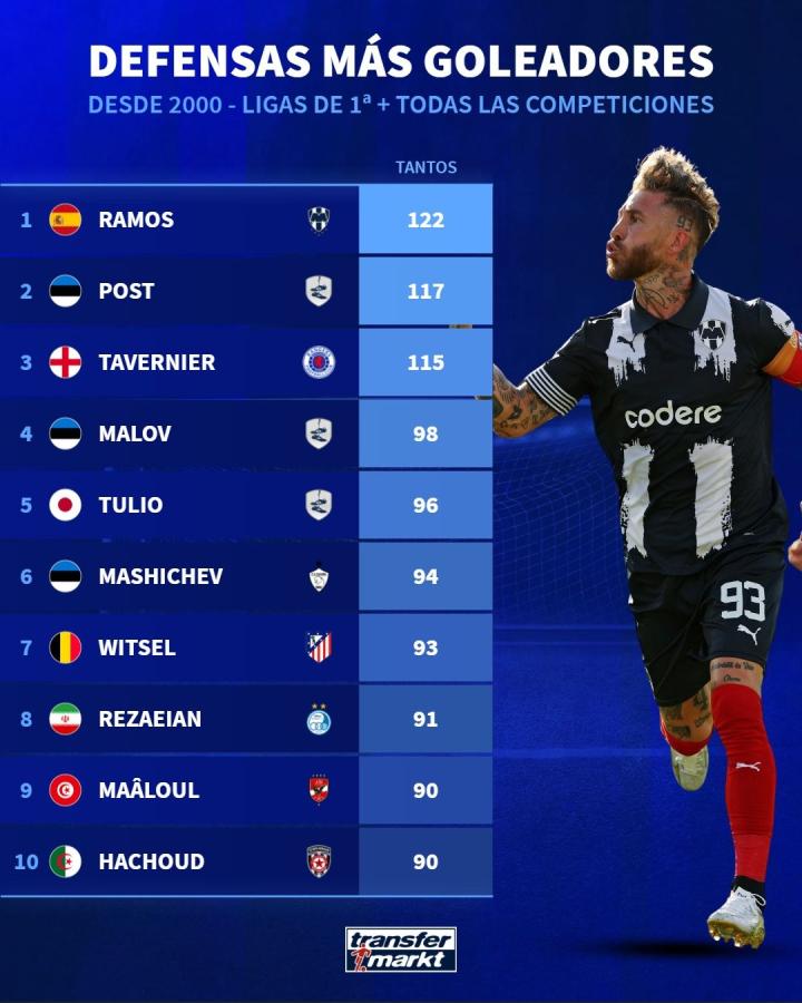 在拉莫斯之后,爱沙尼亚的波斯特以117球紧随其后,英格兰的塔弗尼尔、爱沙尼亚的马洛夫分列第三和第四。尽管拉莫斯的名列前茅令人瞩目,但其他球员的进球数也绝对不容小觑。日本的田中斗莉王以94球排名第五,显示出亚洲球员在后卫位置上的实力。